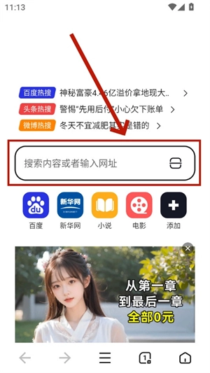 2、进入后,直接输入内容或网址就能进入。