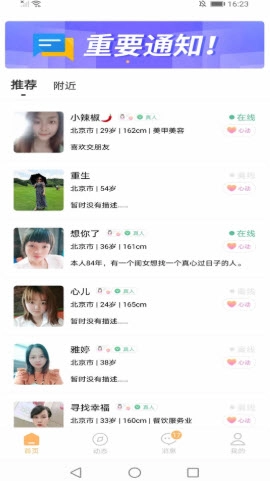 1单身用户均可来此相亲,在这里,你能结识到来自各行各业、不同地区的女生。