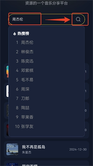 2. 在相应位置输入你想要查找的歌曲名称或者歌手名字,然后点击右侧的搜索图标。