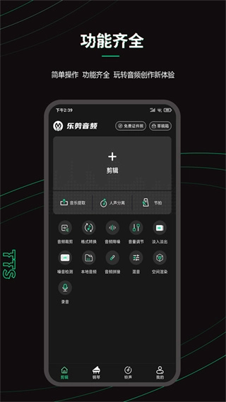 2、专业级音乐剪辑:具备精确至0.1秒的剪辑能力,还拥有合并、混音、分割、变声以及淡入淡出等一系列高级功能。借助这些,你能在手机上轻松创作,无论是打造个性手机铃声,还是处理各类音乐,都能游刃有余。