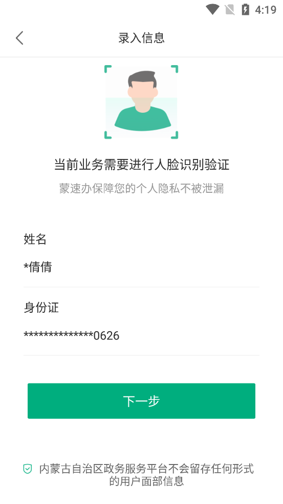 6、请将人脸置于屏幕正中间并保持静止,若首次操作未成功,可多次尝试进入。