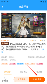 4、玩家点击所需的游戏账号,并点击“立即购买”。