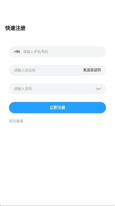 3、通过输入手机号、验证码以及密码来完成注册操作。