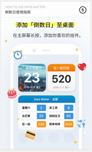 1. 无论何时何地,都能查看你的倒数日,让你对未来时光满怀期待。