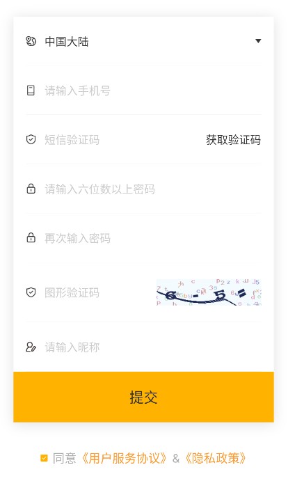3、填写相关信息,注册时需先填图片验证码,再获取手机验证码。