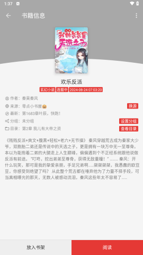 3、连载章节将实时同步更新,确保用户始终站在追书前沿,第一时间获取小说最新内容。
