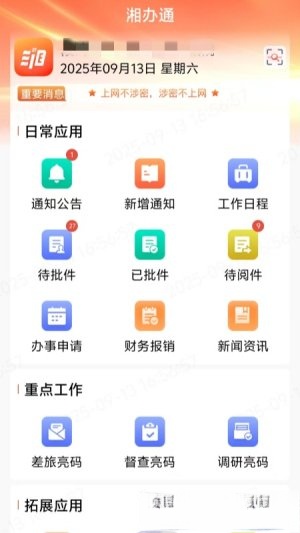 湘办通APP作为湖南党政领域的智慧办公平台,核心聚焦理论学习、政务流转、参谋辅助及督查督办四大板块,旨在打造标准化、智能化的线上办公体系。该平台整合了11个一体化应用模块,既支持用户日常办公事务的高效处理,又能实时推送通知公告,保障党政人员第一时间获取工作动态。