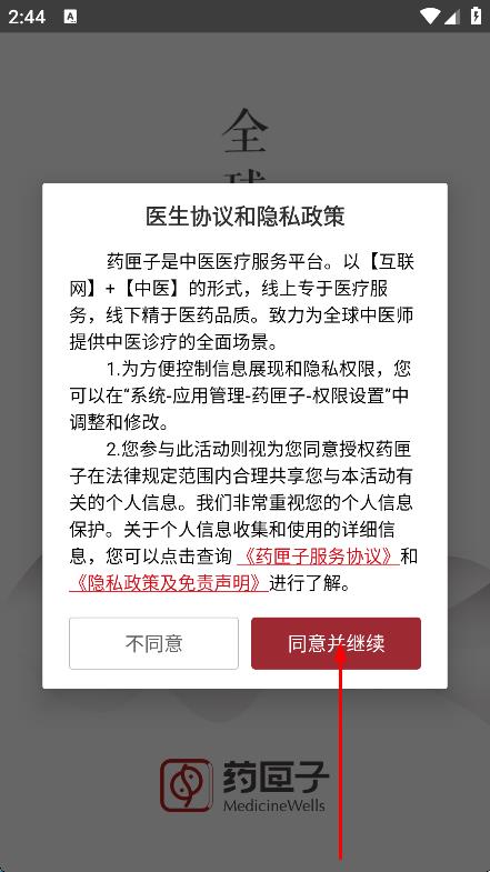 1、在隐私政策弹窗中,点击同意并继续,进入主页面。