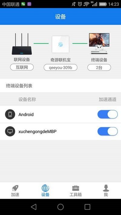 6、奇游联机宝同时支持两个主机设备加速。