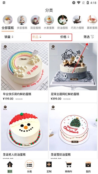 2、你可以在这里了解各类蛋糕,也能手动筛选具体细节。