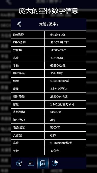 2、点击单个星座、恒星、行星或卫星,即可查看其主要数据与实用信息。