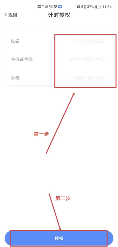 2.填写姓名、身份证号码、联系电话,点击授权