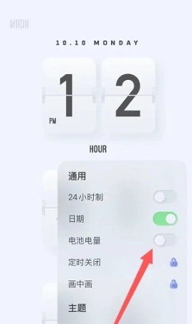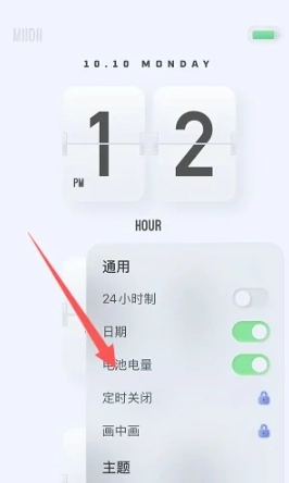 3、点开后在弹出页面里找到电池电量的开关