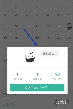 2、完成当日学习量后,系统将自动弹出签到界面。
