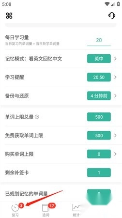 软件里会清晰呈现每日复习单词的数量、学习进展以及未来的复习压力。