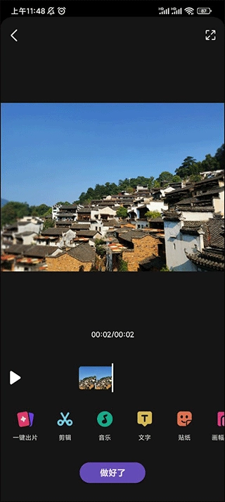 2、此时需要拍摄或上传视频、照片,接着通过添加所需的背景音乐或文字,对发布的作品进行优化。