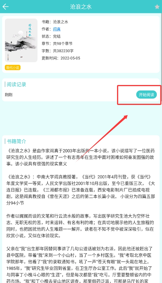 1、打开首页后进入阅读页面,能看到作品简介,若感兴趣,直接点击“开始阅读”按钮就能进入阅读环节。