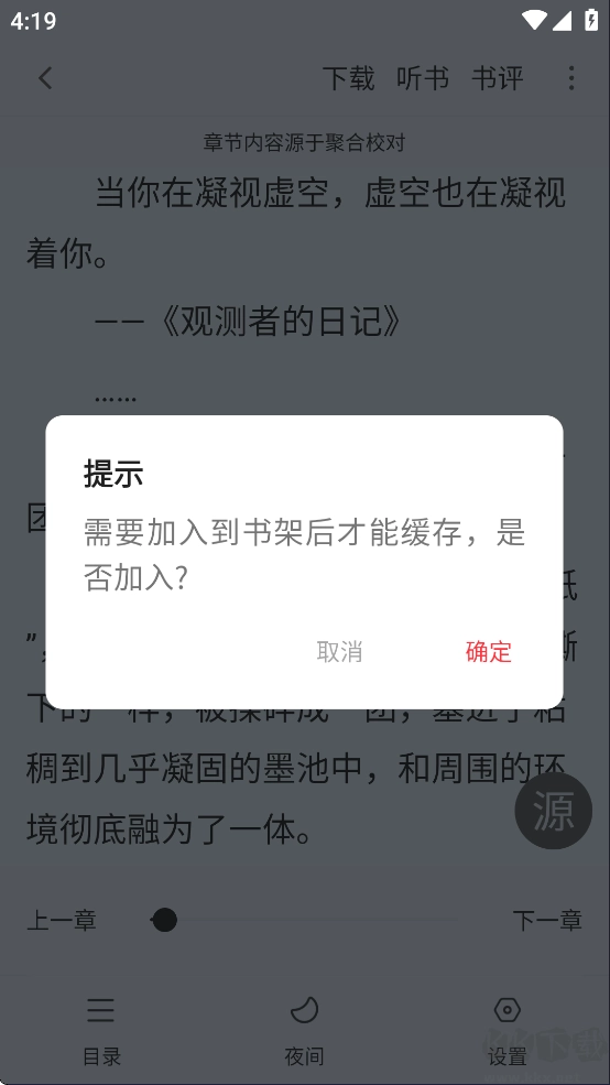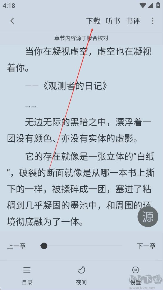 进入阅读界面后,轻点屏幕中央即可调出功能按钮,接着点击