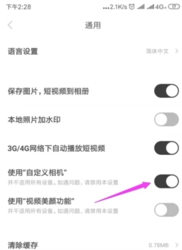 【通用】界面里,【使用视频美颜】功能开的,如图。