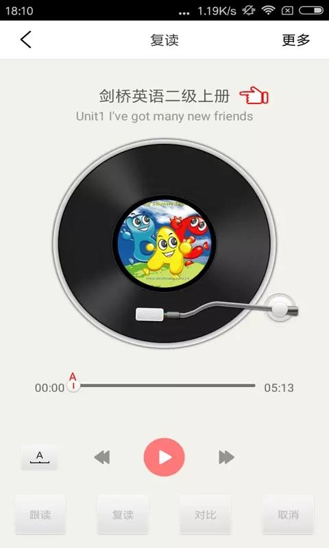 3、进入复读页面后,可选择跟读、复读、对比、取消等功能来执行相应操作。