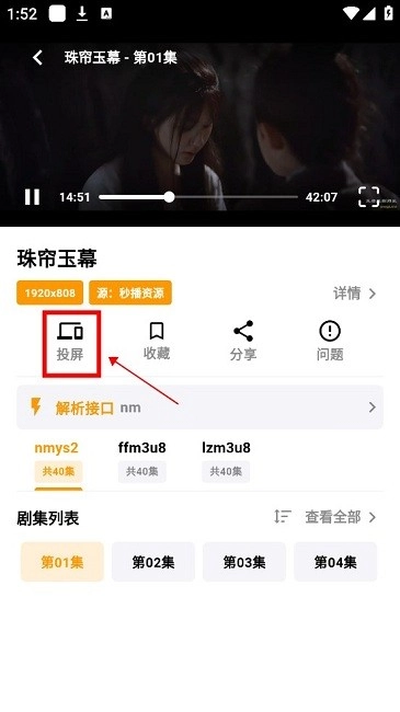 2.接着打开哐哐追剧找到想要观看的作品并点击进入,在播放页点击【投屏】