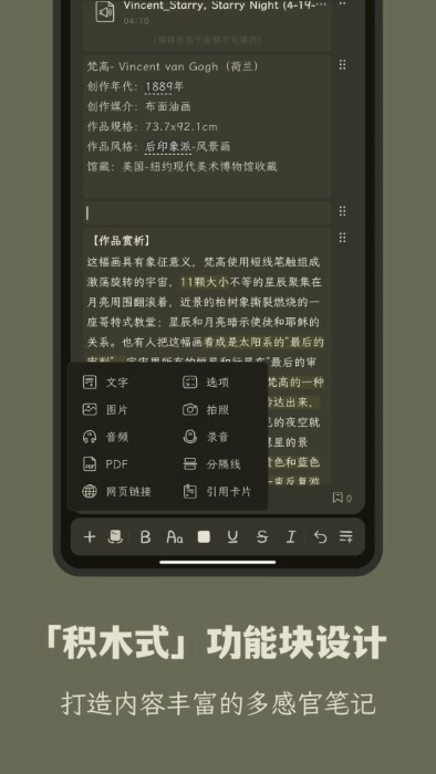 以不同用途的「功能性模块」作为卡片内容的基本单位进行科学组织,便于用户更细致地解构与重组信息,进而还原并保障知识的颗粒性。