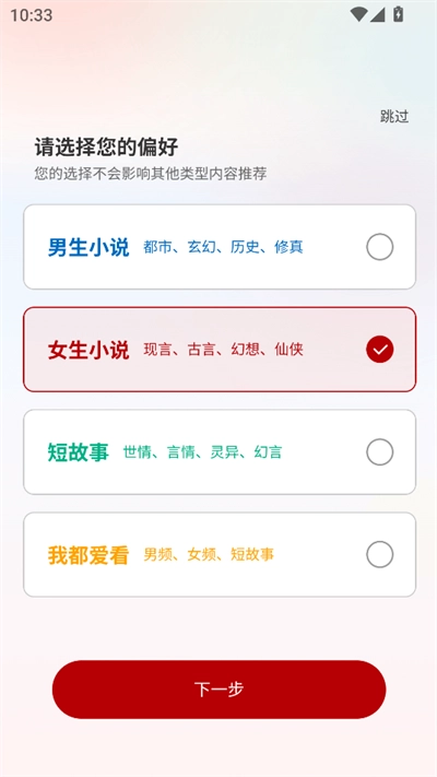 2、首次使用时,可自行设置阅读偏好,具体如图所示。