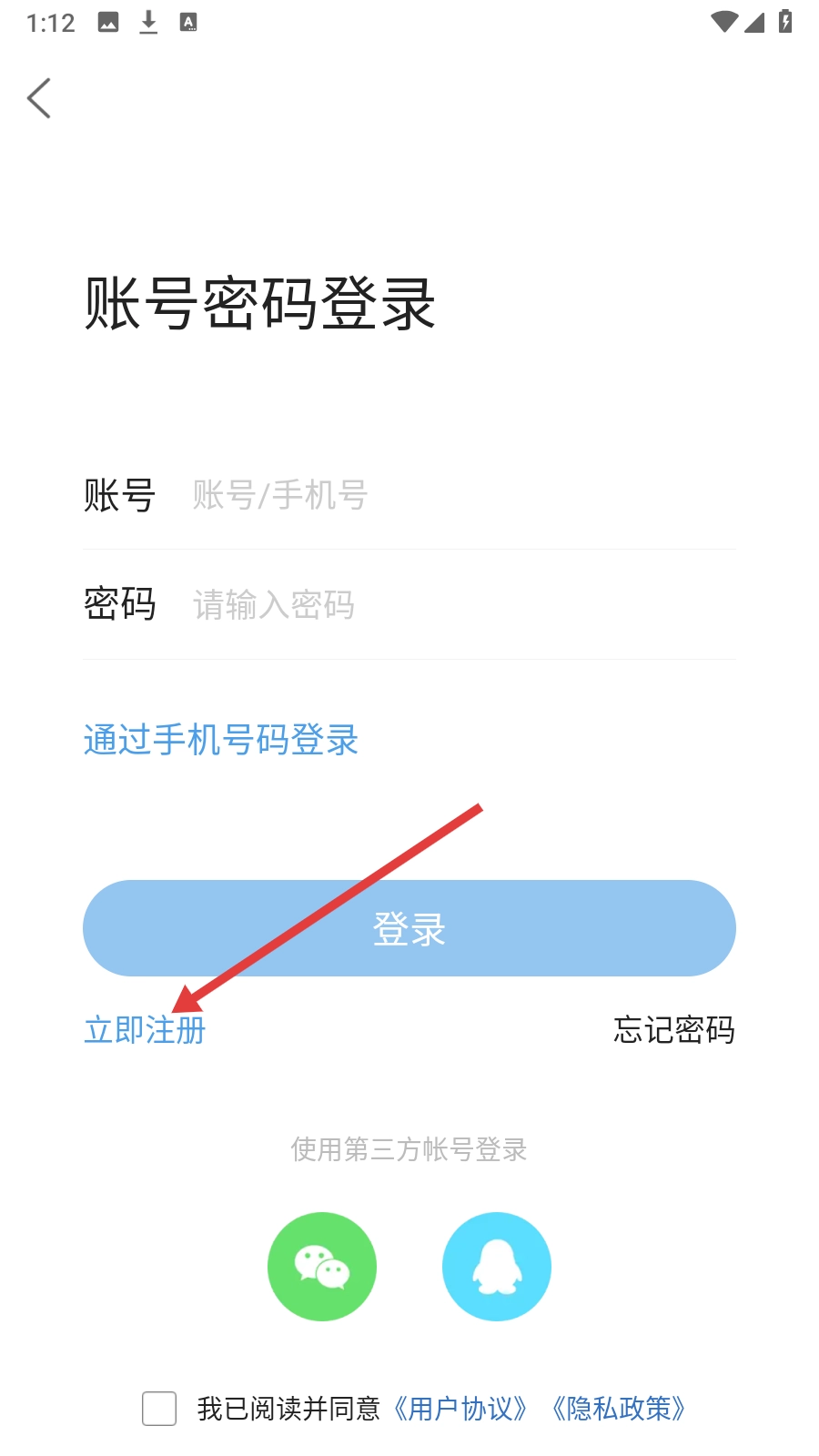 3、在登录页面点击【立即注册】,进入注册页面。