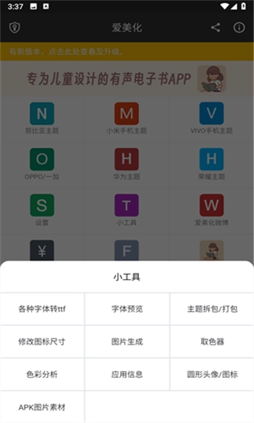 支持全面的DIY编辑功能,用户可以自定义主题配色、修改桌面图标、预览和更换壁纸等。此外,还支持修改WiFi和信号图标、电量图标等系统图标,以及调整图标尺寸和色彩分析等高级功能。