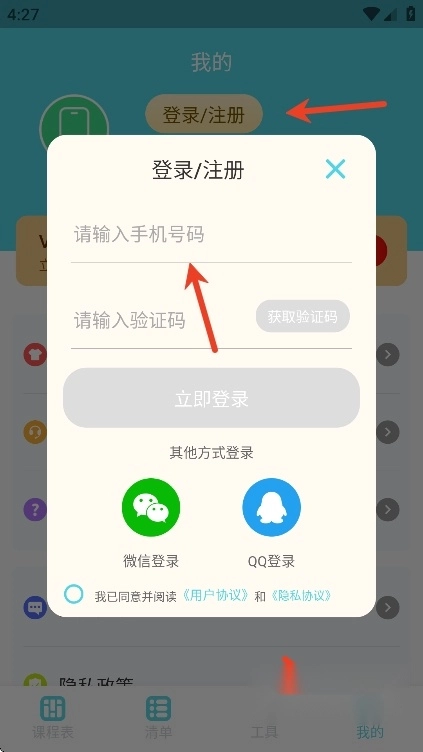 打开,用户们点击我的页面的“登录/注册”,用手机号登录注册账号