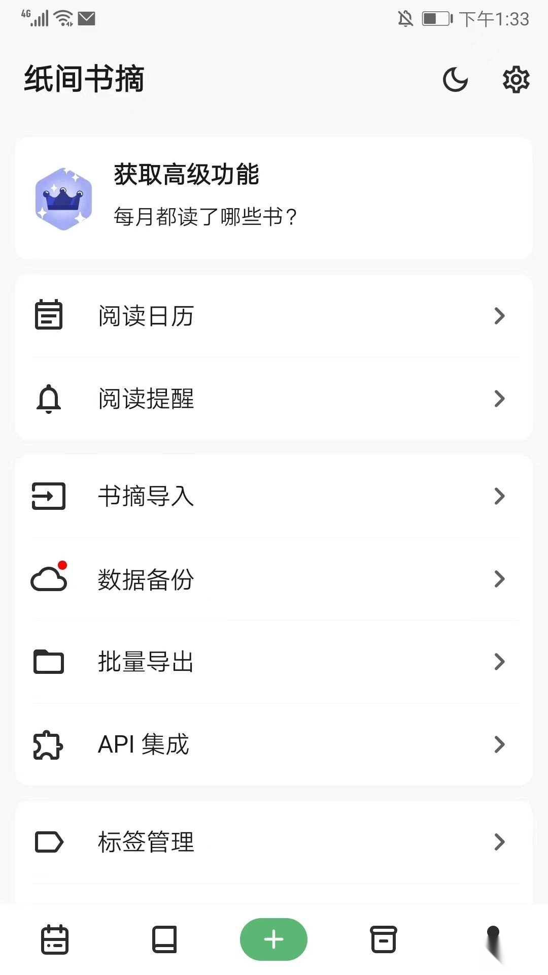 2、进入个人中心后,找到【书摘导入】选项并点击进入。
