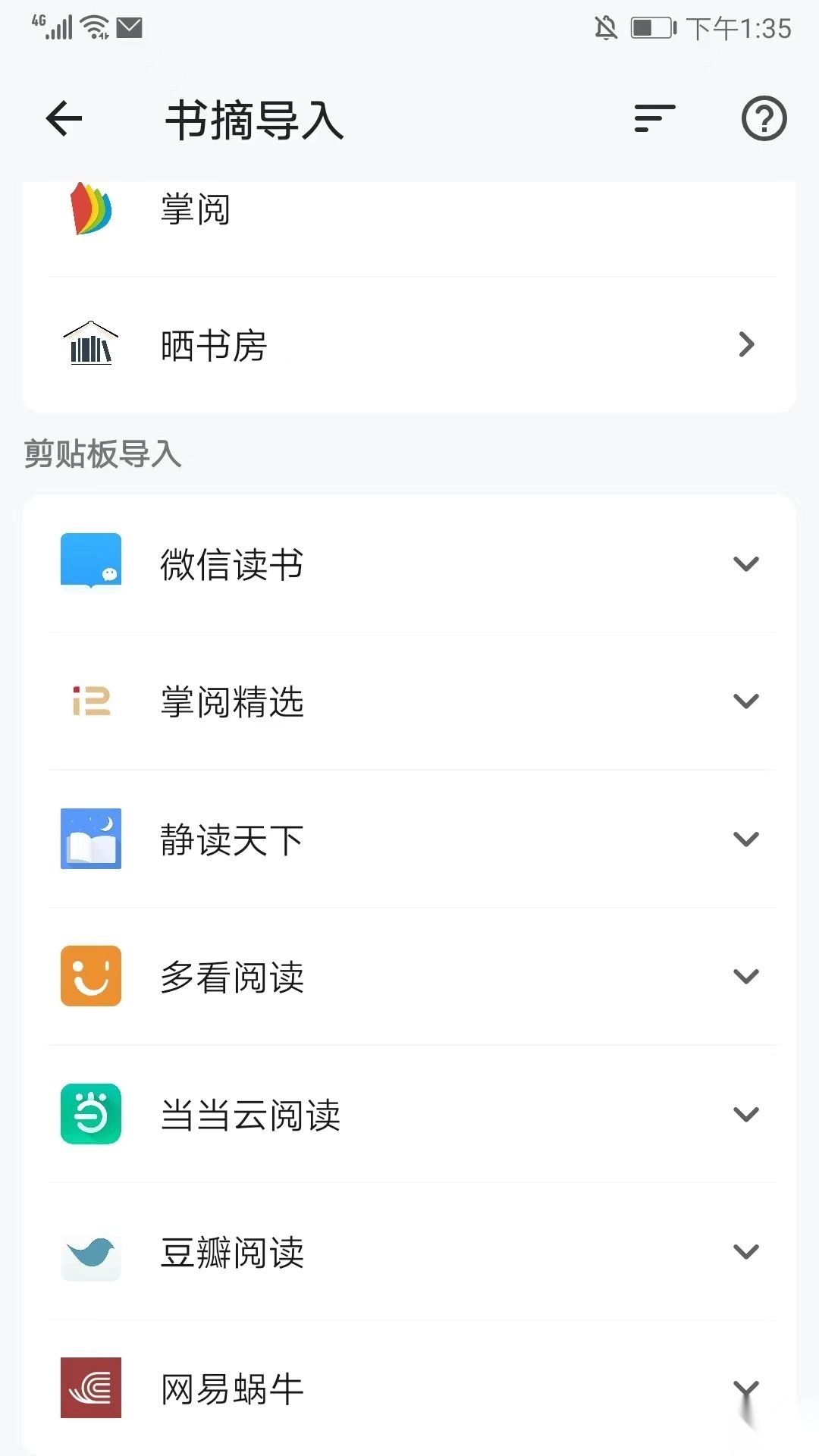 4、往下浏览一下,还能看到支持从微信读书、静读天下、多开阅读、豆瓣阅读这些平台直接导入,挑个自己顺手的就可以了。