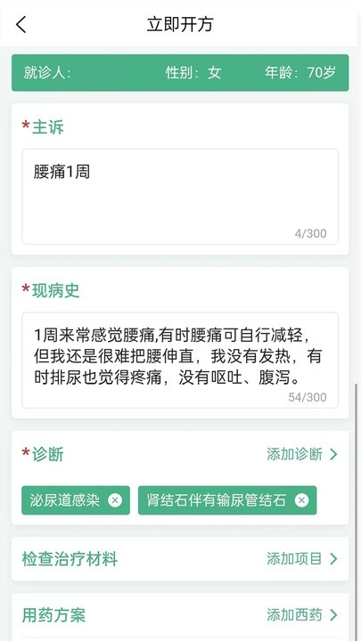 5、支持病症在线编辑功能,同时可在线添加治疗方案与用药方案;