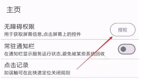 1、首次打开应用时,需要在主页开启“无障碍权限授权”。
